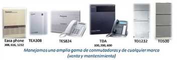 Conmutadores Panasonic y teléfonos.