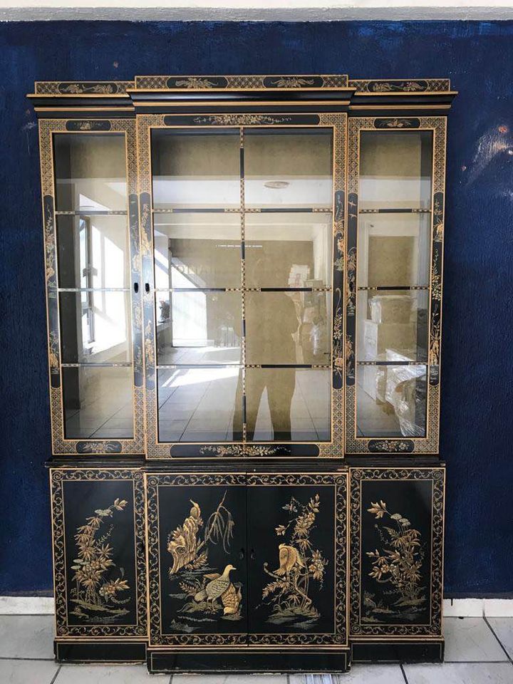 Se vende hermosa alacena o vitrina en madera muy fina, color negro con dibujos y relieves chinos
