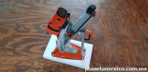 • Base de aluminio inclinable para perforacionesen ángulo.