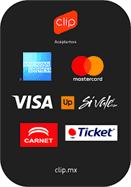 Pagos con tarjeta de crédito o débito y efectivo.