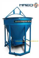Bacha para Concreto Hypermaq para acarreo y movimiento de concreto en lugares de poco accesibilidad, con capacidades desde 328 litros de concreto hasta 1528 litros, cuenta con canaleta.