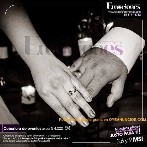 En Fotografía Emociones tenemos el gran compromiso de hacer que su evento se convierta en el recuerdo tangible más importante de su vida, y para lograrlo desde nuestro servicio básico hasta el más completo siempre llevamos dos fotógrafos a todos nuestros eventos de esta manera tendremos múltiples ángulos para lograr las mejores capturas, así lograremos tener mayores detalles de su evento.